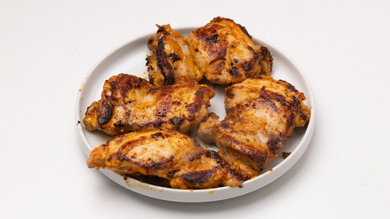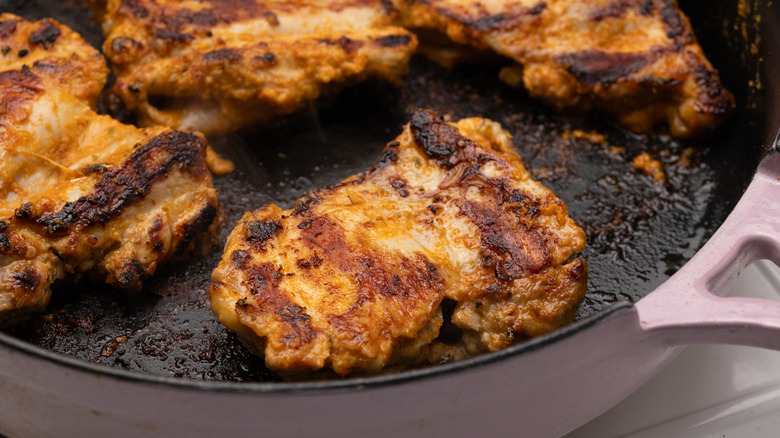 Flip the chicken thighs and cook for another 6 to 8 minutes until cooked through, then remove from pan.