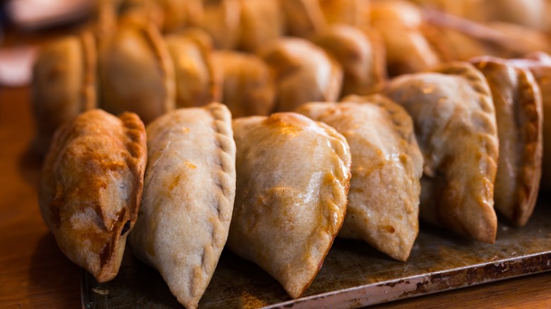 Empanadas are said to have originated in Portugal and Spain, but they're ubiquitous across Latin America, too. The classic, crescent-shaped baked pastry can be found in many different forms from the classic Spanish empanada made with flavorful canned tuna to Bolivian salteñas, which are filled with a meat-based broth, there's an empanada to fit everyone's taste — even those with a sweet tooth. That's right: Empanadas aren't just a savory snack. Make them with a sweet plantain crust, like in El Salvador, or stuff them with a sweet cream cheese, like in Cuba, and you've got yourself a perfect pocket of sugary goodness. Lorena Cantarovici, owner of Colorado's Maria Empanada, recommends filling your homemade empanadas with an apple pie filling to hit that sweet spot.