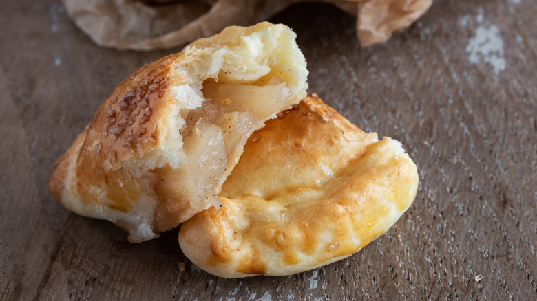 "Try the same filling as apple pie, and serve it warm, for something homey and comforting," Cantarovici said. Before you call this an apple hand pie, you should know that empanada and pie doughs are different. Empanada dough is more tender than flakey. Unlike a typical pie crust, traditional empanada dough contains lard for that extra bit of richness, which pairs oh-so-well with a sweet filling, as per Cantarovici's recommendation. Apple pie filling is super easy to throw together. It requires just butter, salt cinnamon, nutmeg, brown sugar, a little bit of lemon juice, cornstarch, and your favorite soft apple chopped up into small cubes, making this a simple but impressive-looking pastry.