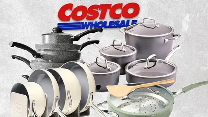 It's oven-safe up to 500 degrees Fahrenheit or 350 degrees Fahrenheit when utilizing the lids. The cookware features a hard anodized aluminum construction with a thick base and thinner sides to aid in durability. The 10-piece set is dishwasher safe, and both the inside and outside are nonstick to make the washing process easier. While it's the only product from Analon on the Costco website, it comes highly rated. Reviews mention that it cooks evenly, heats up quickly, and cleans very easily.