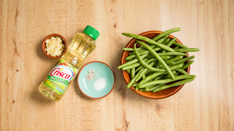 For this recipe, you will need green beans and a neutral-tasting, high-heat oil for frying like vegetable, avocado, canola, soybean, or peanut oil. If you're worried about waste, you can reuse the frying oil in other recipes. After it cools, strain the particles out and store it in a closed container at room temperature.