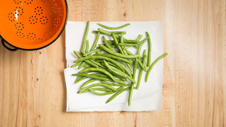 - Wash the green beans and dry them completely with paper towels or a kitchen towel.
