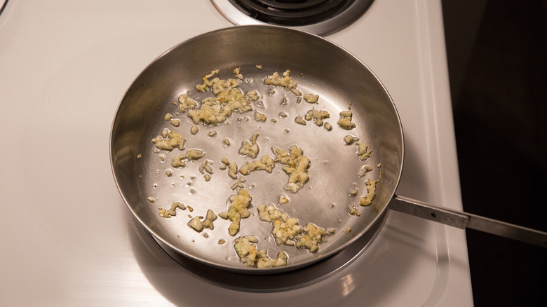 Add the garlic and saute for about 30 seconds to 1 minute until lightly browned.