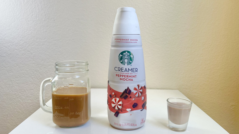 Because I'm familiar with Starbucks' in-store Peppermint Mocha, this was a great reminder that these are flavored creamers — they're not meant to be full-on flavor replicas of your favorite drinks. You can't expect the same results or strength in taste, as the in-store drinks are made with more concentrated, flavorful syrups. For example, the chain's Peppermint Mocha contains four pumps of mocha sauce and four pumps of peppermint syrup; the creamer won't have that same potency, no matter how much you put in your coffee. This did have more oomph to it than the PSL creamer, which solidified its higher spot in the ranking. It retained its flavor with or without the boldness of the coffee and didn't get muddled.