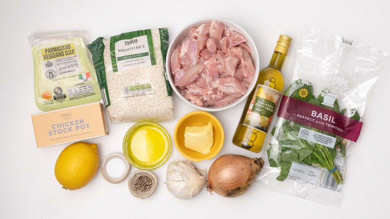 Gather the ingredients for this lemon chicken oven risotto recipe