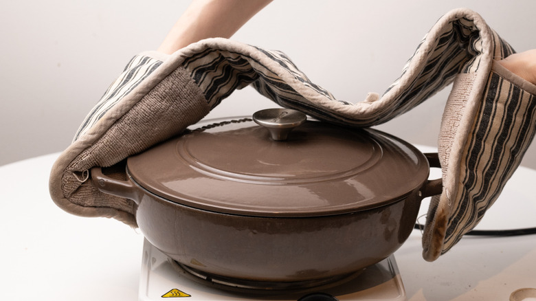 Mix well then place the lid on the pan.
