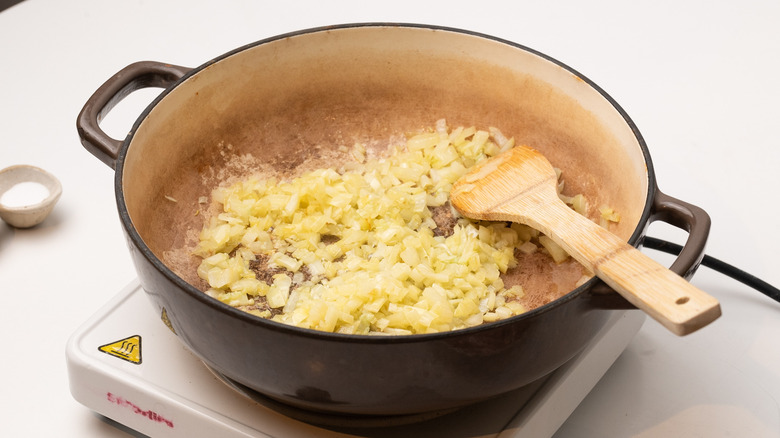 Step 4: Saute onion and garlic