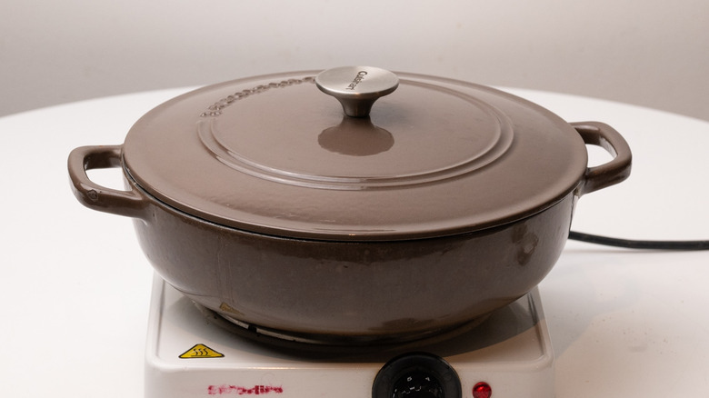 - Heat an ovenproof pan with a lid over a medium heat.