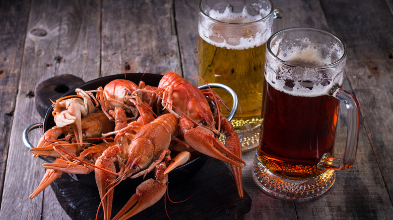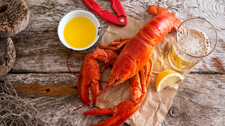Nothing says luxury like lobster, whether you're tucking into a whole lobster feast, spooning creamy lobster bisque, digging into lobster spaghetti with white wine tomato sauce, or trying something new like lobster mashed potatoes. While lobster is pricey, it's the taste and texture that exudes that luxurious air — it's succulent, buttery, rich, and sweet-meets-savory. The only way to elevate lobster is with a brilliant drink pairing. One might assume this means wine, but there's a whole world of options with beer. Beer tends to get overlooked for finer pairings, which is a mistake. There are hundreds of styles abundant with flavor, aroma, and mouthfeel, each able to highlight different elements of dishes. There is some precedent for teaming lobster with beer — consider the perfection of a lobster roll with a shandy. Beer pairings can present a fresh way to enjoy your favorite dishes, lobster very much included. All it takes is a little understanding on why certain beers work with certain foods.