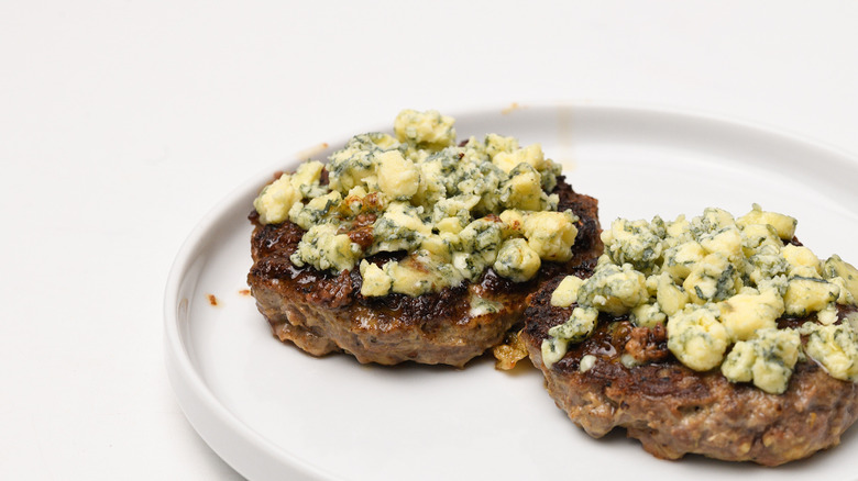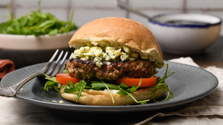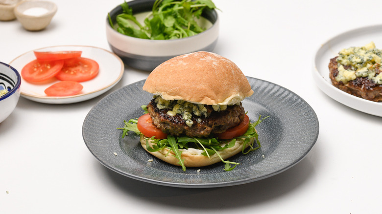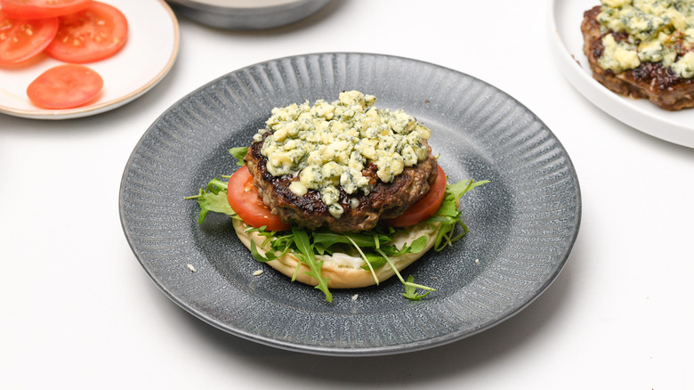 Switching up the type of bread you use is a simple way to change a burger; a deliciously soft brioche bun always works well, or a more rustic roll that has a crusty top will pair nicely with the rich flavors of the venison and the cheese. Another area that's easy to adapt is in the burger toppings, and here the world really is your oyster. Crisp bacon rashers, or alternatively a dollop or two of bacon jam, would both make great additions to this venison burger. For more gourmet burger-topping finesse, why not cook up some caramelized onions to add a delicious sweetness that will balance out the deeply savory flavors of the venison and bleu cheese? Finally, you can never go wrong with a pickle or two, or a spoonful of slaw to add freshness and crunch.