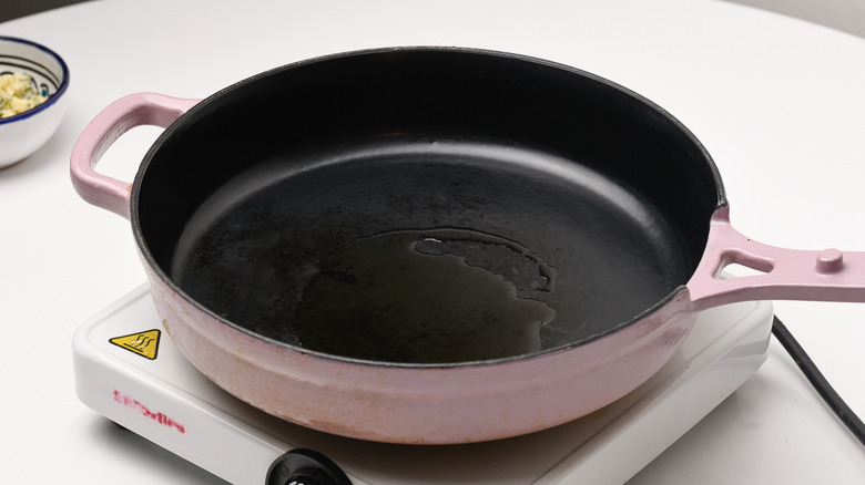 - Heat a frying pan containing the olive oil to a medium-high heat.