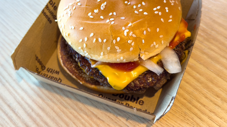 As far as burgers go, the McDonald's Quarter Pounder has reached the pinnacle of fast food success. Even in its early days, it quickly became one of the menu's classic items, and folks would drive far and wide to secure a juicy quarter-pound beef patty. McDonald's set the stage for fast food establishments with its boosted burger patty. Though plenty of competitors tried to measure up, we saw more failures than success stories.