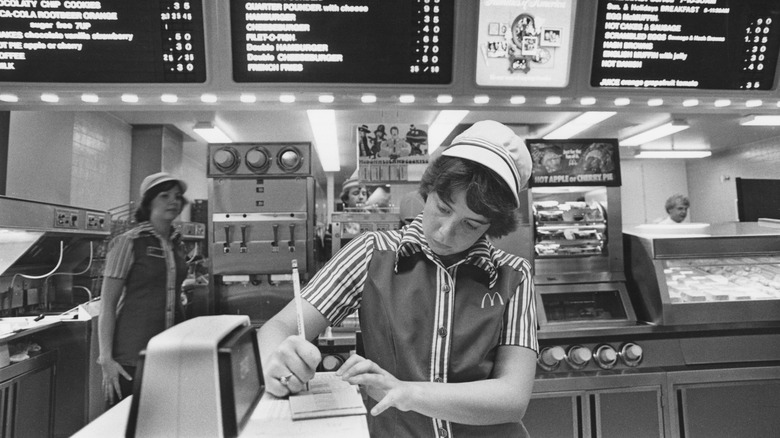 Back in the '70s, purchasing dinner with pocket change was the standard, and compared to today's $6.39 price tag, it seems like a bargain. In the good old days, you couldn't find anything on the McDonald's menu for more than a dollar. The standard hamburger was 28 cents, a cheeseburger was a nickel more, shakes were a mere 35 cents each, and a cup of coffee only cost you 15 cents. In 2021, Simple Thrifty Living data showed that even making a burger at home was over $2 on average, as CNBC reported.