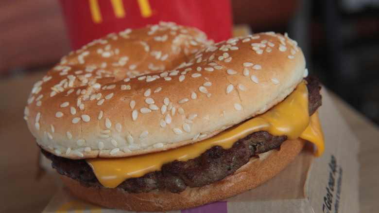 Most burger joints have one signature sandwich, but McDonald's has managed to popularize a few. There's the Big Mac, the McDouble, and the most filling of all — the Quarter Pounder. The juicy burger is named after its hefty size, featuring a quarter-pound beef patty, onions, pickles, mustard, and ketchup on a fluffy sesame seed bun. While the original is cheeseless, the Quarter Pounder with Cheese is a popular option, complete with two slices of gooey orange American cheddar.