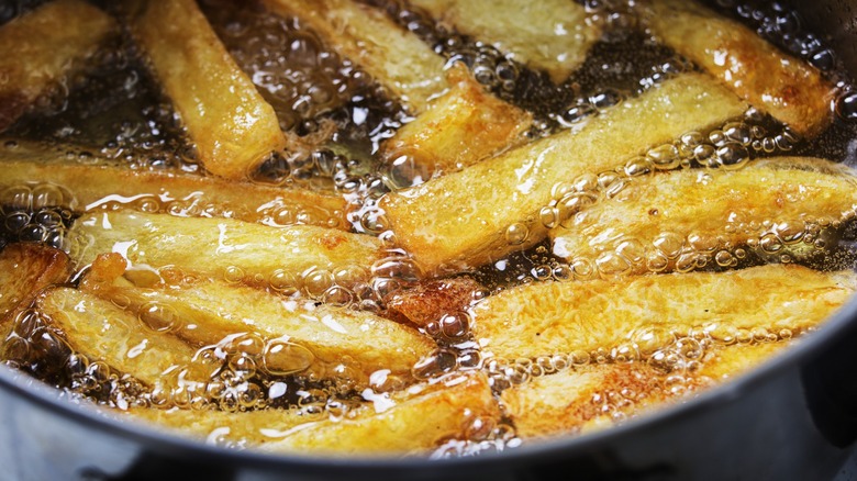 Few dishes out there are as beloved as a simple plate of French fries. Other than being cheap and easy to make, they're enjoyable whether you pair them with a juicy burger or eat them on their own. If you've made homemade fries before, however, the odds are good that you used the classic double-fry method to give your fries a good crunch. Well, according to Guillaume Thivet, Executive Chef at New York's Grand Brasserie, a double-fry — surprisingly — won't cut it if you'd like your fries extra-crispy (and let's face it, everybody does).