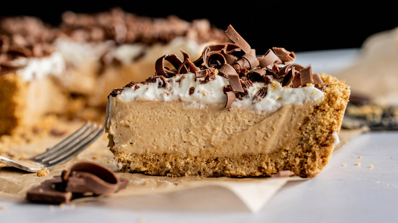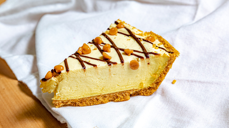 There are quite a few peanut butter desserts out there — some good, some bad, some amazing — but the most amazing of all is none other than peanut butter pie. The untrained eye might see peanut butter pie and wonder how it's all that different from peanut butter cheesecake, especially since both recipes typically involve cream cheese. There are some differences for sure, the biggest one being that most peanut butter pie recipes call for far less cream cheese than cheesecake recipes. The cream cheese helps the pie keep its shape, but it's not the star flavor profile — the peanut butter is, as it should be.