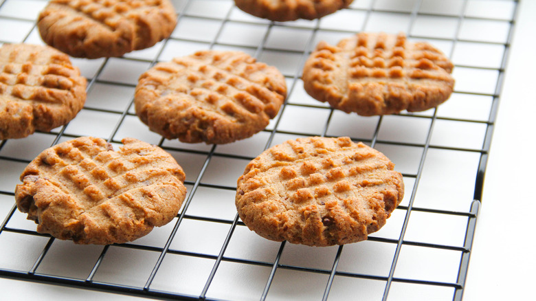 Perhaps the most well-known or quintessential peanut butter dessert out there, peanut butter cookies — those ones that are super crispy with a cross-hatch design embedded on top — are just okay. I understand that this is a controversial take, but peanut butter cookies have never stuck out as anything to write home about or even bother making as a dessert, unless someone specifically requests them. These plain cookies would benefit from some sort of ingredient addition to make things more exciting, like peanut butter chips, chocolate chips, or a peanut butter drizzle on top, but the classic and most well-known variation of the cookie is pretty bare-bones, often just consisting of PB and baking basics like flour, sugar, and eggs.