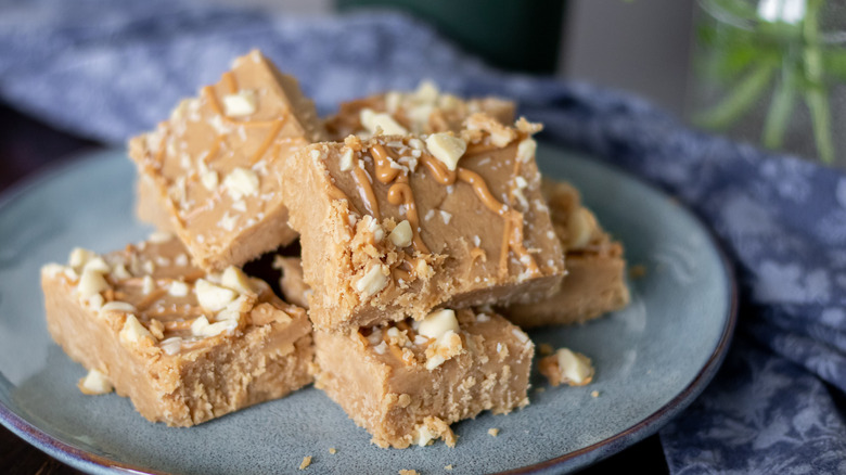Many people associate fudge exclusively with chocolate, and chocolate is a very common ingredient in the dessert, but the only truly required ingredients are butter, milk, and sugar. So, fudge recipes can feature staple flavors other than chocolate, and one such popular flavor is none other than peanut butter. Some recipes might include both chocolate and peanut butter, like this old-fashioned peanut butter fudge recipe that throws white chocolate into the mix. The result is a chewy little dessert bar that isn't bad by any means, but it's mostly forgettable in the grander scheme of peanut butter desserts.