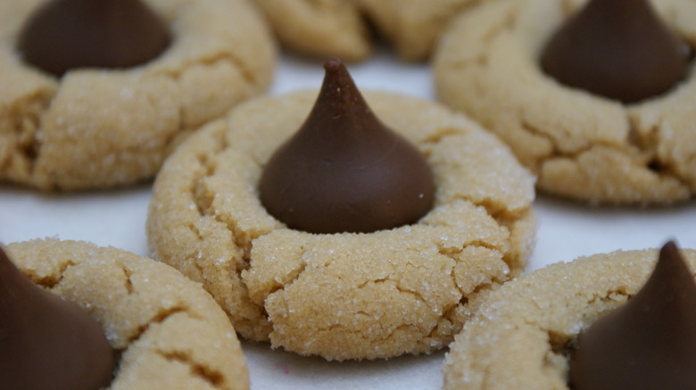 Unlike classic peanut butter cookies, blossoms have a thicker cookie base, meaning that the cookie itself is melt-in-your-mouth soft. The Hershey's kiss almost just seems like a mindless garnish, something to elevate a plain cookie, but it really pulls its weight in adding just the right chocolatey contrast. Ultimately, peanut butter blossoms pack loads of PB flavor, they're soft on the inside with a subtle sugar crunch on the outside, and it's all too easy to come across a platter of these cookies and say you'll just have one... only to find yourself five blossoms deep merely a few minutes later.