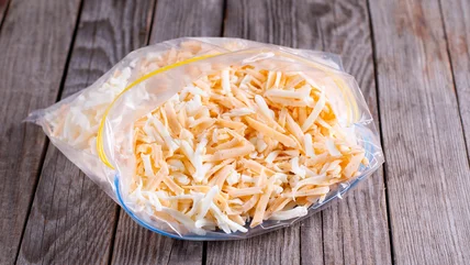 For these types of cheese, it's a good idea to shred them before you freeze them; they will take about twice as long to thaw if you leave them in block form. If you're on a time crunch, you can shred frozen cheese as is — it will melt when it comes in contact with heat, which will save you lots of time defrosting.