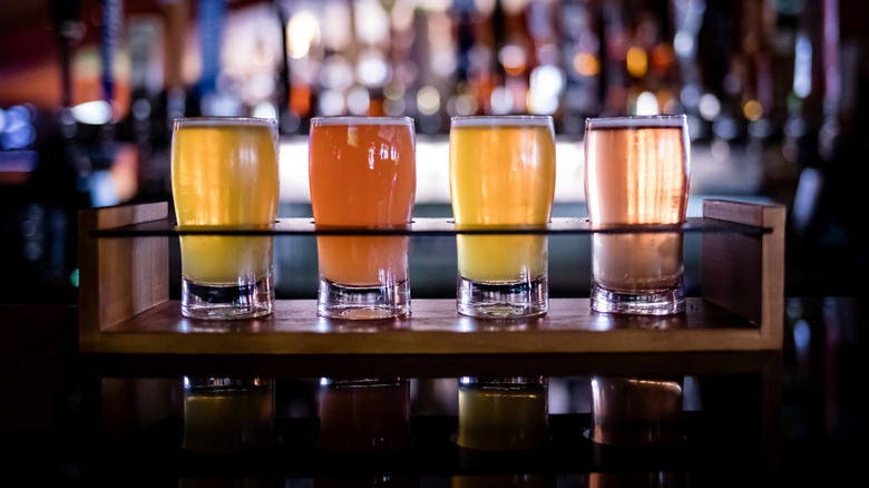 It's actually somewhat unusual for a drinker to polish off an entire flight. The experience is meant to help acquaint an individual with the brewery's offerings, which could include everything from a light and crackery Pilsner to a pine-forward West Coast-style IPA to a roasty stout or even a tongue-tingling sour. A flight is not a vehicle to get people smashed in a short period of time, an etiquette mistake to avoid at any brewery. The whole point is to order a range of styles, drinking them from lightest to heaviest, since more robust offerings tend to carpet bomb the palate, and then commit to a full pint of whatever caught your fancy. There's bound to be at least one beer in the bunch that you'd prefer to pour down the drain rather than finish — it's completely fine to abandon a taster you don't like.