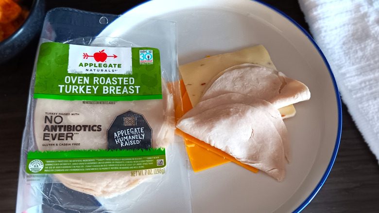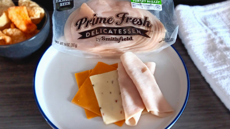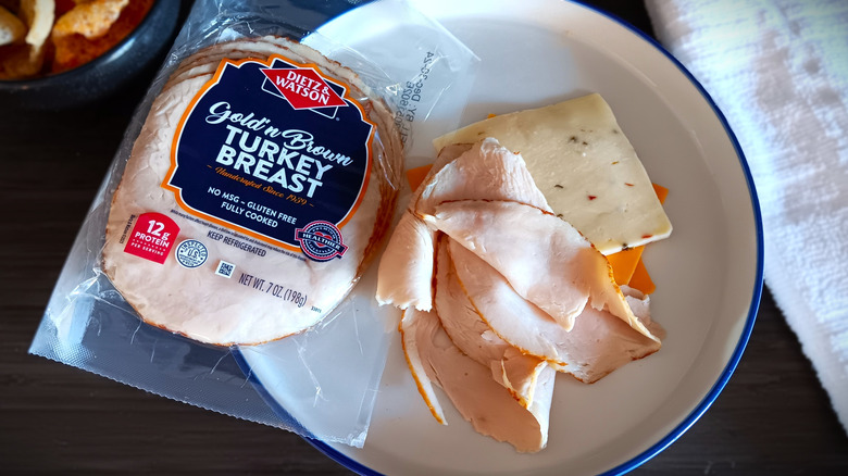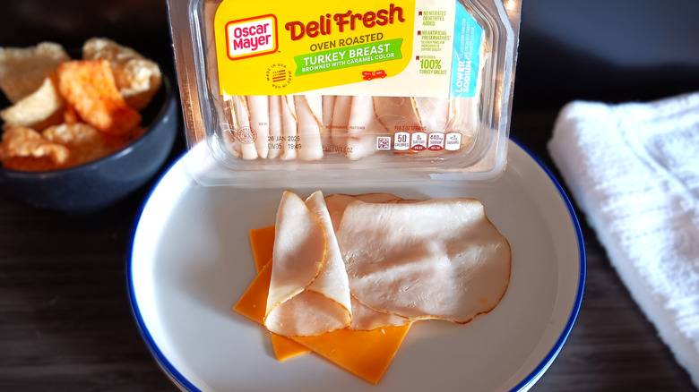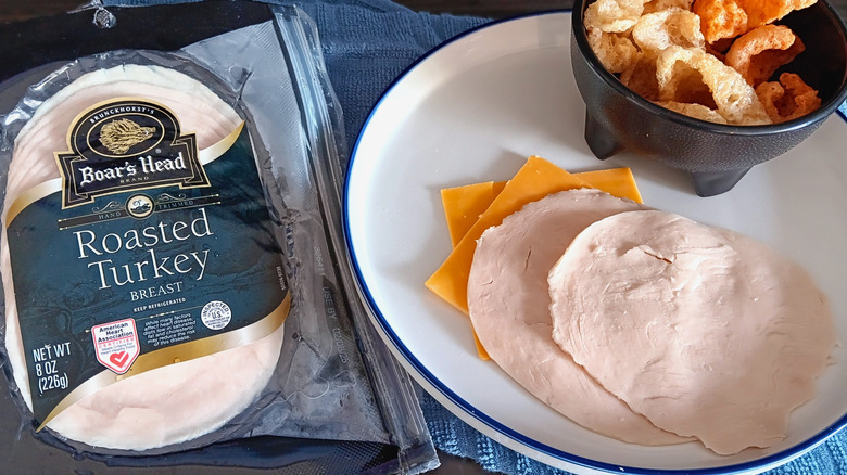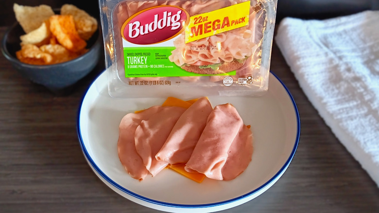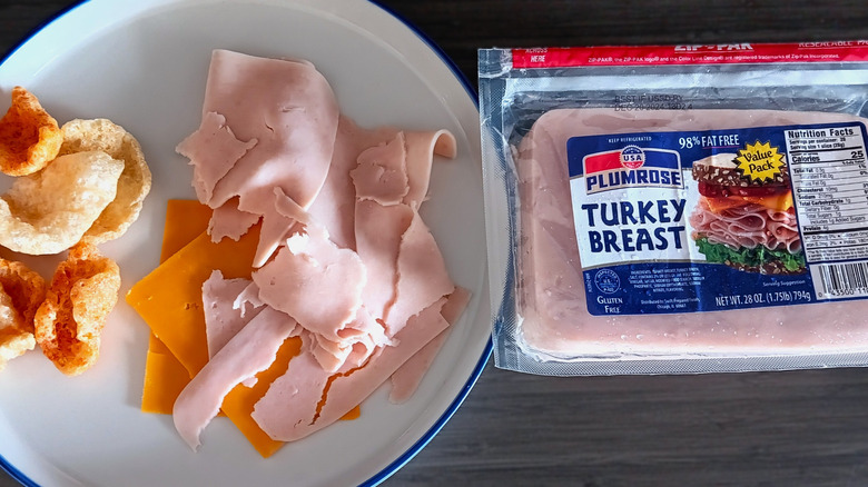 Just the look of the Plumrose package had me hesitant to try what's inside. It resembled canned ham or grade school lunch meat. The package is hefty; it weighs almost 2 pounds. Though, I suspect much of that is water. Since each package contains roughly two dozen rectangular slices of turkey, it feels like you're getting a deal. Except you're not — unless you truly enjoy pressed and processed meat. The only positive I could find is the large shape and somewhat dense texture of the meat would help to create a thick sandwich.