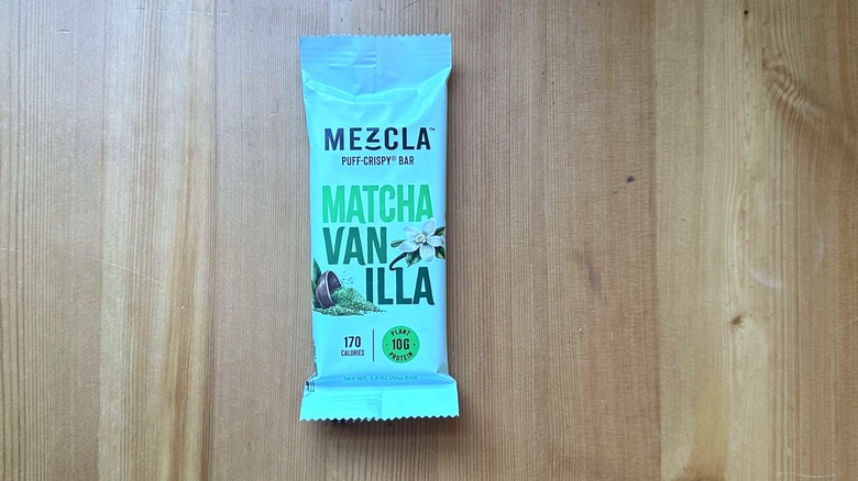 Here's another plant-based protein bar for those with sweet cravings, but this one is available in a flavor that you probably won't find in many other brands. Although peanut butter and chocolate-doused protein bars are common on store shelves, matcha is a flavor you're not likely to stumble upon. That's why we were so excited to try this bar from Mezcla. The matcha flavor is not super strong — it's light and herbal — but that's kind of what we like about matcha in the first place. Add in a light vanilla flavor, and you have a milder-than-expected protein bar that offers a lovely crisp from puffed rice.