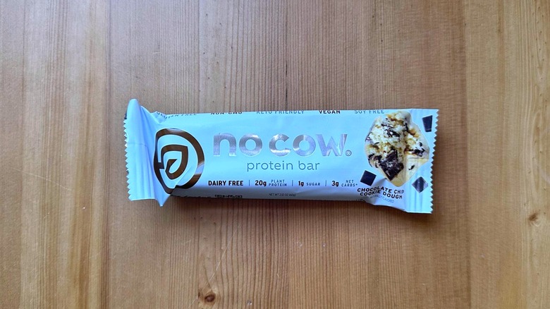 Whether you're specifically trying to avoid dairy or you're skipping out on animal products altogether, No Cow is a brand you should check out for vegan and dairy-free protein bars. Although some plant-based protein bars don't offer as much protein as their animal product-based counterparts, you won't have a problem with No Cow's Chocolate Chip Cookie Dough protein bars. That's because this thing offers a whopping 20 grams of protein — much higher than most of the other options on this list.