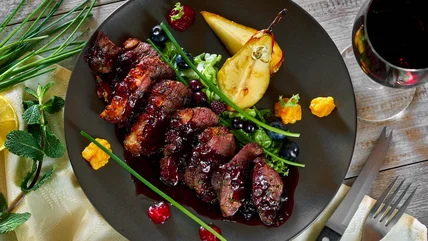 When pan-frying duck breast at home, you can simply press it with a finger to check if it's done instead of using a meat thermometer. If it feels soft but springs back slightly, it will likely be medium rare. If it doesn't have any give at all and feels tough, you may have overcooked it. However, never fear, as you can rescue overcooked duck at a pinch by drizzling over an accompanying sauce to lend it some much-needed moisture or shredding it and mixing it with a dressing.