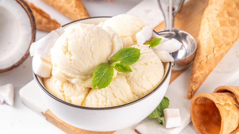 Organic cane sugar is a good option per Tyler Malek's advice, but it's not the only vegan option you can use for your homemade ice cream. Turbinado sugar, like this sugar from Iberia available on Amazon, is also considered vegan if you can't find organic cane sugar at the local grocery store. Then there are the other sweeteners that aren't quite sugar but will introduce sweetness to the mixture including agave, honey (not exactly vegan since it comes from bees), stevia, and maple syrup. Just be mindful of what else goes into your ice cream because ingredients like coconut milk and chocolate will also add varying levels of sweetness.