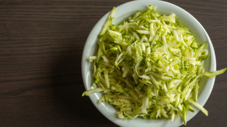 You don't even have to have them sit for too long. Just toss them with the sugar as soon as they're grated and leave them there while you're making the rest of the batter.