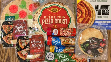 These days, pizza is no longer reserved for takeout or delivery nights. Walk into any grocery store and you'll find plenty of options to make your own pizza at home, from bagged pizza dough to fresh take-and-bake pizzas. Ready-made pizza crust provides a happy medium between just-pop-it-in-the-oven frozen pizzas and dough that requires tricky stretching and rolling. These products usually come par-baked or fully baked so that you can customize your pizza with your favorite ingredients while avoiding messy dough and longer baking times. Not all options on the shelf are created equal, though. We ranked 10 store-bought pizza crusts, and the one you should avoid is from your favorite little doughboy: Pillsbury's Classic Pizza Crust.
