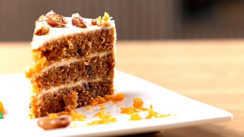 Carrot cake is surely one of the most underrated types of cake out there. Not only does it give off the impression that it's "healthier" because it's full of grated vegetables, but it's also customizable. Elevate your carrot cake by adding dried fruits like golden raisins or chopped apricots, or go tropical with coconut flakes. Nuts can also be a great way to switch up the texture of your otherwise soft and decadent carrot cake.