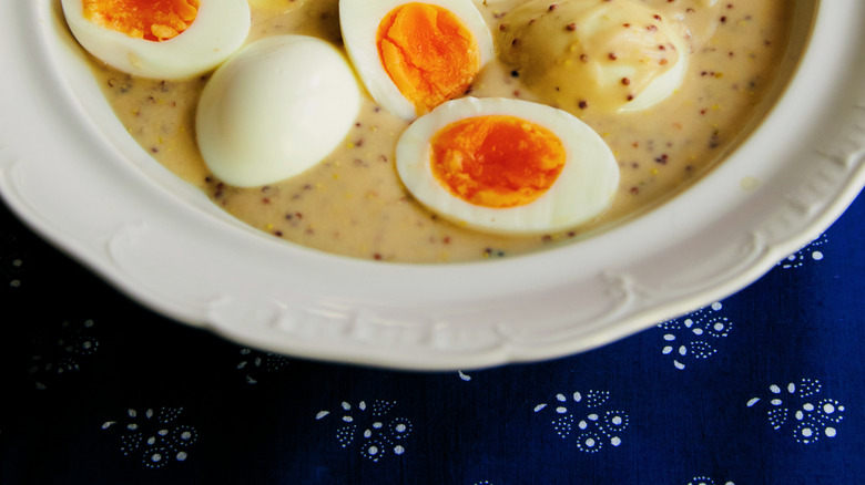 "Eier in senfsoße is a great example of German armeleuteessen, or poor man's food," says Luisa Weiss. "It's hearty and filling, but quite economical. Serve the eggs with boiled, peeled potatoes or mashed potatoes to better soak up the deliciously savory sauce."