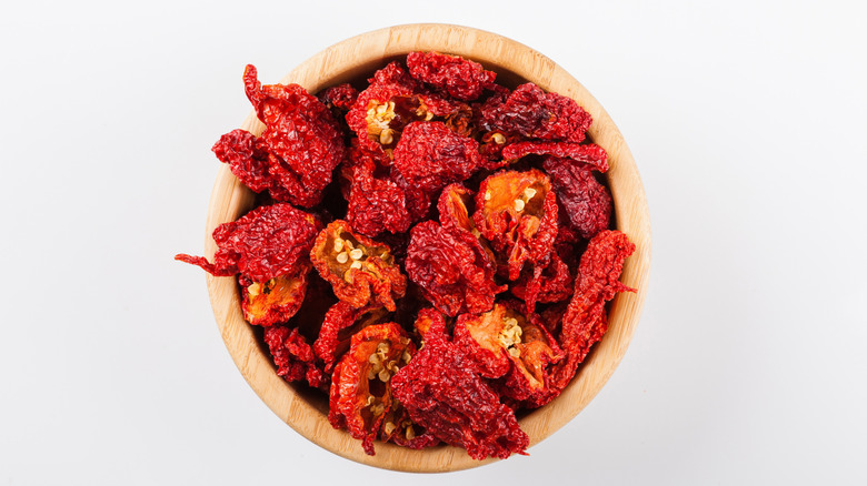Adding a cheese with a bit of spice to your charcuterie board is a great idea, but you might want to be quite cautious with the heat, especially if you are serving it to guests that may not be able to handle too much of it. An example of a cheese that will be beyond most people's spice threshold is Carolina Reaper cheese. It's infused with one of the hottest chiles in the world, the Carolina Reaper, which has a Scoville heat rating of around 2.2 million units. The creamy element from the cheese is unlikely to be enough to balance the intense heat — at least for most people. If you love hot peppers, try some of this cheese as a personal challenge, but keep it off the charcuterie board.