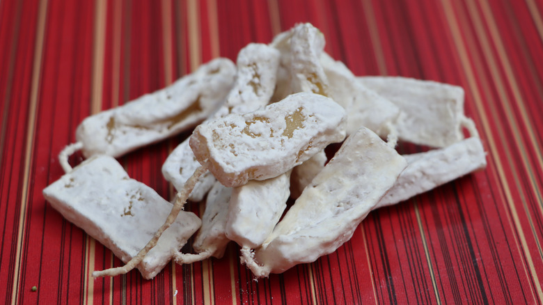Chhurpi is made from yak's milk and is a delicacy in southern Asia. It is considered to be the world's hardest cheese, and is enjoyed as a snack in a similar way to gum; the longer you chew at it, the more it softens in texture. Including a particularly hard cheese on your charcuterie board is not a good idea, as the effort needed to cut through it will take away from the enjoyment of eating it.