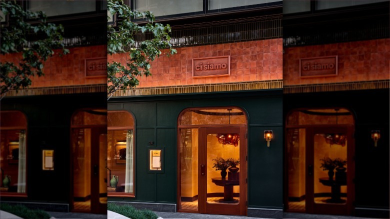 Ci Siamo, the home of celebrated chef Hillary Sterling, is located on the second floor of the Manhattan West building. While the restaurant admits on its website that it can be "be a bit tricky to find," once you've made it to the elevator, you'll be greeted with a tray of stemless wine glasses nestled next to a couple of bottles of Chianti in straw baskets. A framed note that reads, "Cheers! A little something to kick things off — enjoy a glass of wine on the ride up," encourages visitors to get the festivities started before even entering the restaurant.