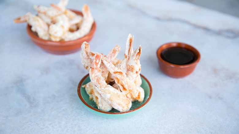 Shrimp tempura, with a light and crispy batter on the outside and perfectly cooked shrimp on the inside, is a favorite at Japanese restaurants. It's commonly found on menus alongside sushi tempura and tempura made from vegetables such as green beans, sweet potato, kabocha squash, and mushrooms. Tempura is served with a rich, slightly sweet sauce called tentsuyu, also known as tempura dipping sauce, which provides an excellent complementary flavor. Shrimp tempura, along with the other kinds of tempura, is battered in a simple mixture of flour, egg, and water and then deep fried. While deep frying provides a traditional flavor, it's not the only way to make it.