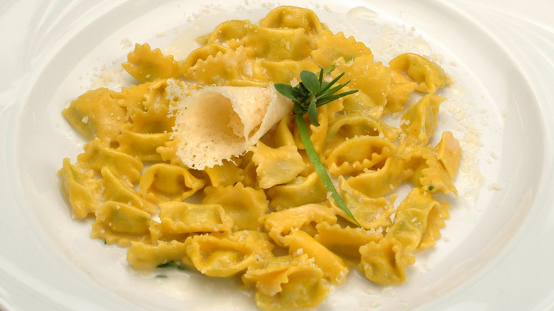 This Sardinian specialty might not look like what you think of when pasta is on the menu, but these doughy dumpling-like treats are just one more example of the dish's versatility. Culurgiones are made with pasta dough and stuffed with a mixture of potato, pecorino, and mint, then boiled and served with a simple tomato and garlic sauce. Citrus zest is sometimes added to the filling for a refreshing boost of flavor.