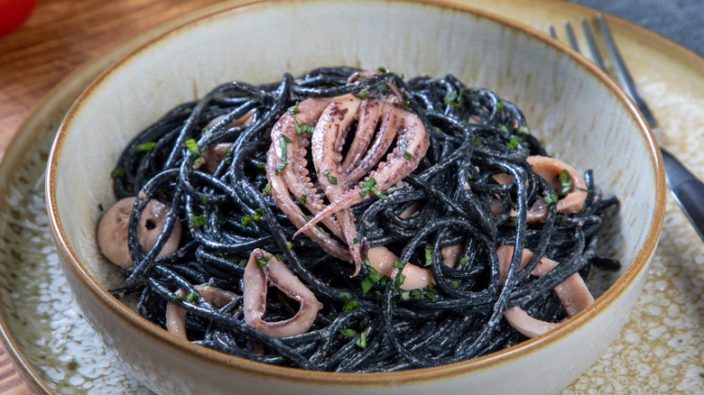 Seafood lovers can double down on the briny taste of the ocean with this recipe. Spaghetti al nero di seppia is a traditional dish from eastern Sicily, prominently featuring cuttlefish ink. The recipe was created in an effort to consume all of the components of cuttlefish, including the ink sac. It's certainly visually striking with its deep black tint, and the unique flavor profile sets this in a league of its own.