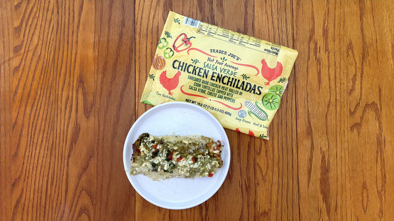 I find that Trader Joe's generally offers something I love or hate. I have never fallen in the middle with one of their products. With the salsa verde chicken enchiladas, I can say these are going in the love column. These enchiladas were beautifully presented, even frozen, with bright red peppers and dark green onions setting atop a lovely muted green salsa verde. And it tasted just as good as it looked.