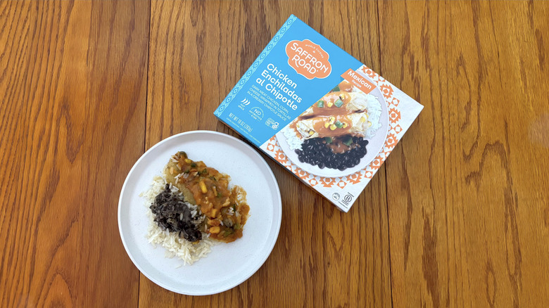 This Saffron Road selection offered what was supposed to be a smokey, spicy chipotle sauce flavor with hearty black beans and fire-roasted corn. And I was pleased to see that the enchilada had been prepared using Oaxaca cheese, which should be creamy and similar to a nice mozzarella.