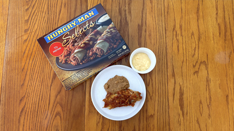 Just placing this in my shopping cart took me back to the time of aluminum-covered TV dinners. I genuinely chuckled when I realized what I thought was a cheese sauce was actually a serving of pudding, a side offering I thought had been lost to the ages. Even taking it out of the package was nostalgic as the beef enchiladas with Mexican rice and refried beans were separated into their neat little compartments as though Hungry-Man had not changed a thing in decades. But upon tasting it, I was clearly knocked back to the present day. This is not what I recall at all from a frozen dinner.