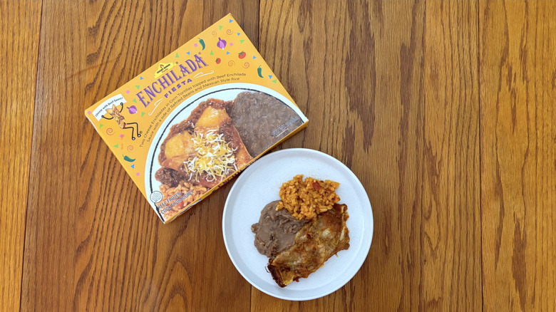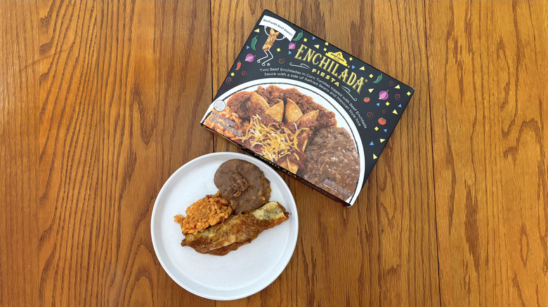 The thing I liked about this right off the bat is that the rice and refried beans come in separate portions. And as far as flavor is concerned, each one tasted as you would generally expect. The enchilada, however, didn't have much flavor other than the corn tortilla, which presented a really nice texture but was definitely the flavor frontrunner.