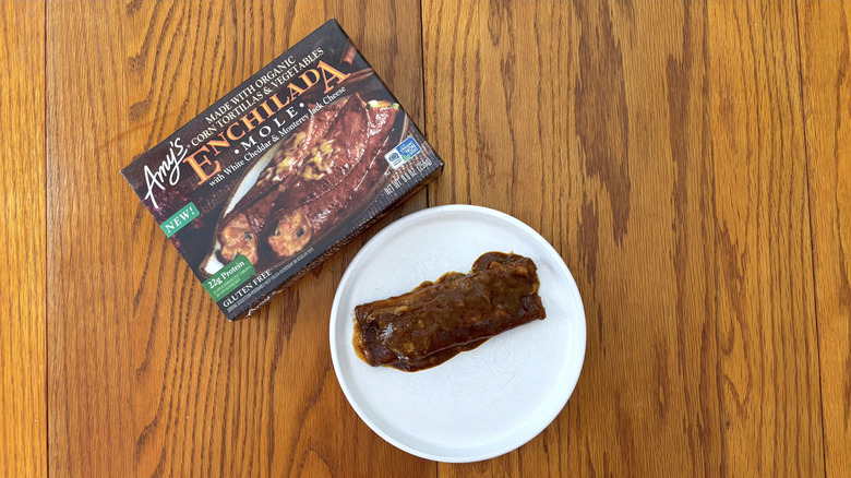 The description on the box gave me pause as I reviewed the ingredient list for the mole sauce — dried chiles, roasted pumpkin seeds, cashews, almonds, bittersweet chocolate, and warming spices. Amy's is a brand that stands out for me because it incorporates interesting ingredients and flavorful options. And this one was no different.
