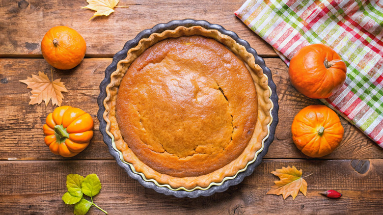There are few pies out there that are as iconic as pumpkin. This sweet pie, which graces many Thanksgiving tables every year, is made with ingredients like pumpkin puree, spices, and eggs, all set into a classic pie crust. But pumpkin pie truly wouldn't be pumpkin pie without one key ingredient: evaporated milk.