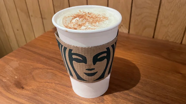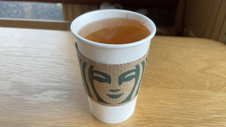 Steamed Apple Juice is easily one of the most no-frills drinks on this list. It's all in the name, and there's nothing extravagant added to it. There are no added ingredients and it's totally caffeine-free as it's solely made of apple juice. The beverage is hot and nostalgic and feels like you're taking a walk into an apple orchard on a misty afternoon. Although this drink is a top contender for kids, we think it's a solid option for people of all ages who don't prefer caffeine.