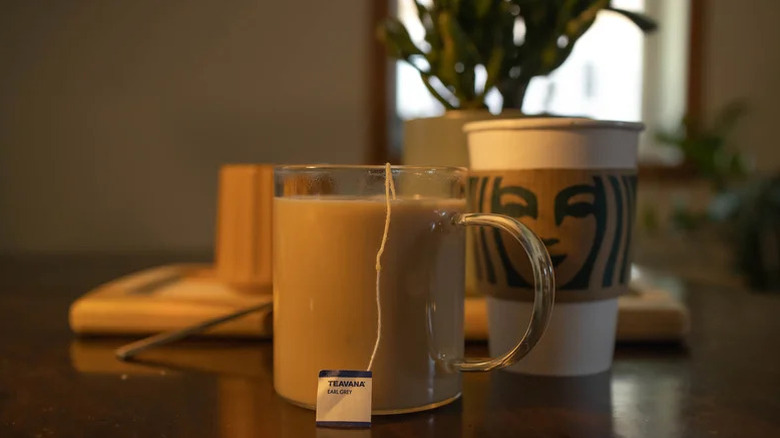 The London Fog Tea Latte is like a warm embrace, a cozy and delightful blend of bergamot and milk with hints of lavender and vanilla. Easily one of our favorites, the drink is made with Earl Grey tea, vanilla syrup, and milk. It is the ideal choice when you want caffeine but no coffee; the drink has around 40 milligrams of caffeine, so it's enough to perk you up but not nearly as much as a shot of espresso.