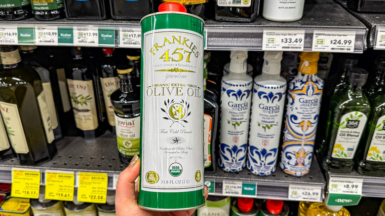 Spending $40.99 on a bottle of olive oil might sound excessive, but Frankies 457 organic extra virgin olive oil is one of those pantry splurges that's totally worth it. Whole Foods offers an impressive variety of olive oils, from affordable everyday options to high-end, small-batch bottles, but Frankies 457 stands out for its exceptional quality and flavor. Sourced from a family-run estate in Sicily, this organic olive oil is cold-pressed from handpicked olives, ensuring every drop is fresh and bursting with flavor. Its taste is bold yet balanced, with grassy, peppery notes and a buttery finish that elevates just about anything it touches. This isn't your average cooking oil; it's basically like having a bottle of liquid gold in your pantry.
