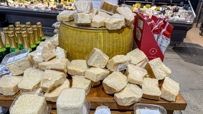 One of the coolest things about Whole Foods' Parmigiano Reggiano is how it arrives at the store. Cheesemongers ceremonially crack open massive 85-pound wheels using traditional tools — a process as fun to watch as it is delicious. Whole Foods even once held the Guinness World Record for simultaneously cracking the most wheels of Parmigiano Reggiano (426, to be specific) across its stores. While it's pricier than generic parmesan, it's miles ahead in flavor and texture. A small wedge goes a long way, making it a worthwhile addition to your fridge for elevating everyday meals or even girl dinners.